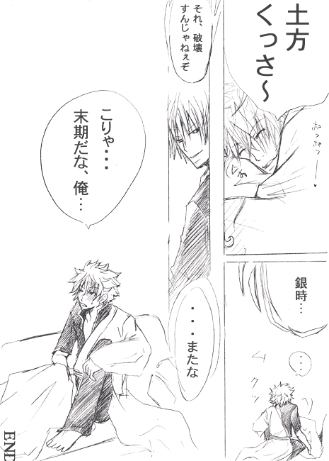 弐 まあ、末期ですね。 ええ、勿論、私が。 銀さん可愛いとか思えば思った出どうかと思うけど(笑) 何でこんな甘いのばっかりなんだかね。 因みに、この漫画に付随するお話は…コレ。 だって、土方君専用クッションなんてあなた…。 私の妄想の賜物ですもの。