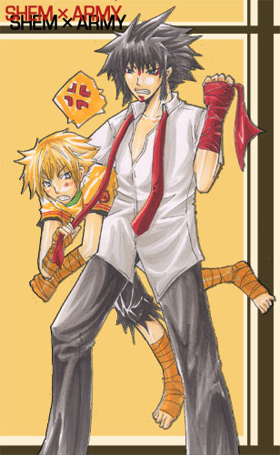 喧嘩勃発 セムとアーミーって、大喧嘩なんかしそうにないじゃないですか。 でも、敢えて喧嘩が勃発したらどうなるだろうとか、考えたらこんな感じ。 アーミーが本気を出せばセムなんかものの数秒であの世行きでしょうけどね。 なんだかこう見てみると戯れのような感じに見える。 喧嘩の理由は大体、互いが大切すぎて起きそうな。 セムアミって、いいねえ…(しみじみ)